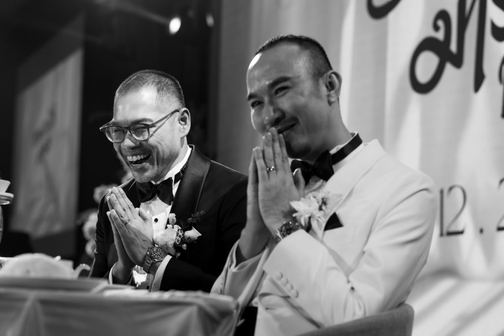 งานนี้น่าจะเป็นอีกงานที่รู้สึกอินไปกับบรรยากาศงาน ตั้งแต่ที่ได้ฟังเรื่องราวของคุณหนุ่ม มารุต และคุณโต้ง อรรถนิติ เวลา 19 ปี ทีผ่านอะไรมาด้วยกันเยอะมาก ตั้งแต่ยุคที่ทุกอย่างเปิดเผยไม่ได้ จนมาถึงปัจจุบัน ตอนถ่ายผมเห็นคุณหนุ่ม ร้องไห้บ่อยมาก หลายๆรอบผมก็รู้สึกน้ำตาคลอไปด้วย การใช้ชีวิตที่จับมือกันมา 19 ปี มันคงไม่ใช่เรื่องง่าย แต่วันนี้ทุกอย่างมันสมบูรณ์แบบมาก เราเห็นบรรยากาศของกลุ่มน้องๆที่รักทั้งคู่มาช่วยงานกันอย่างเต็มที่ แขกที่มางานทุกคน ต่างมาด้วยความสุข ตัวผมเองอาจจะไม่คุ้นเท่าไหร่ แต่เราสัมผัสได้ถึงความรู้สึกที่ทุกคนตั้งใจมางานนี้ เป็นงานที่อบอุ่น ซาบซึ้ง และเป็นวันที่สวยงามมาก