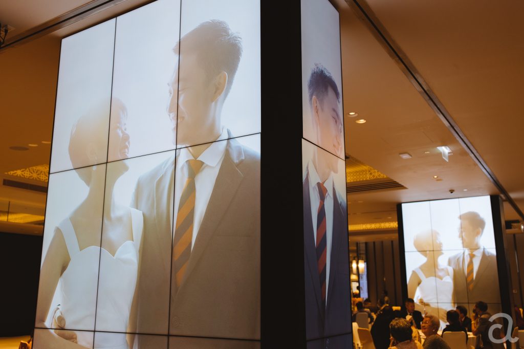 มีห้องจัดเลี้ยงที่รองรับงานแต่งงาน ที่มีการตกแต่งด้วยจอ LED ของซัมซุงที่มีความคมชัดมาก